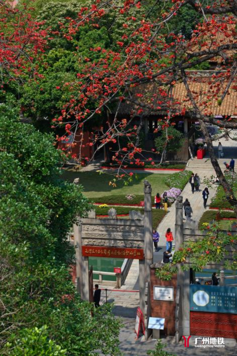 这里是俯瞰农讲所的最佳视角。600年学宫的红墙黄瓦尽收眼底,木棉花与“星火燎原”火炬同框——仿佛革命火种与英雄花开在这一刻相遇。
