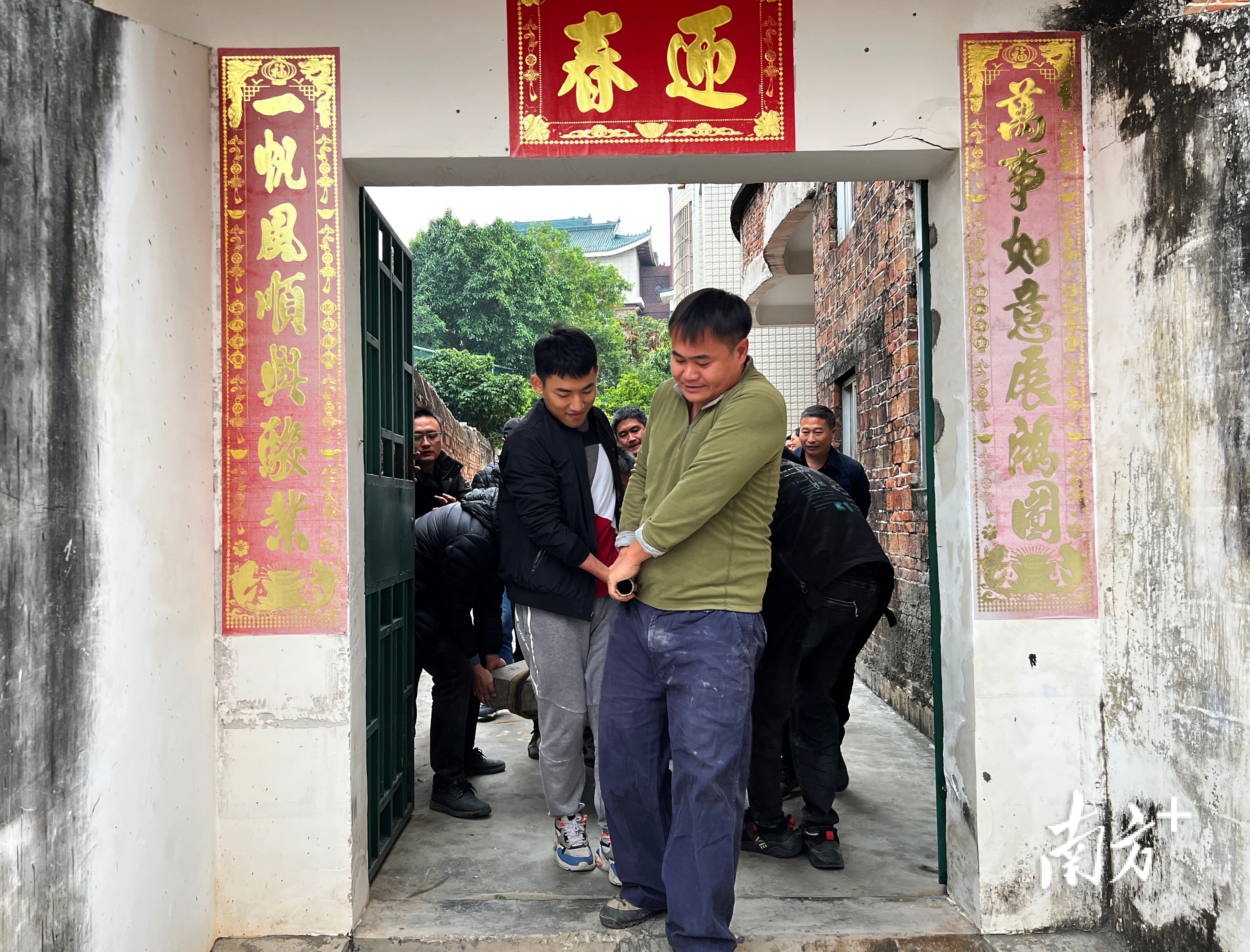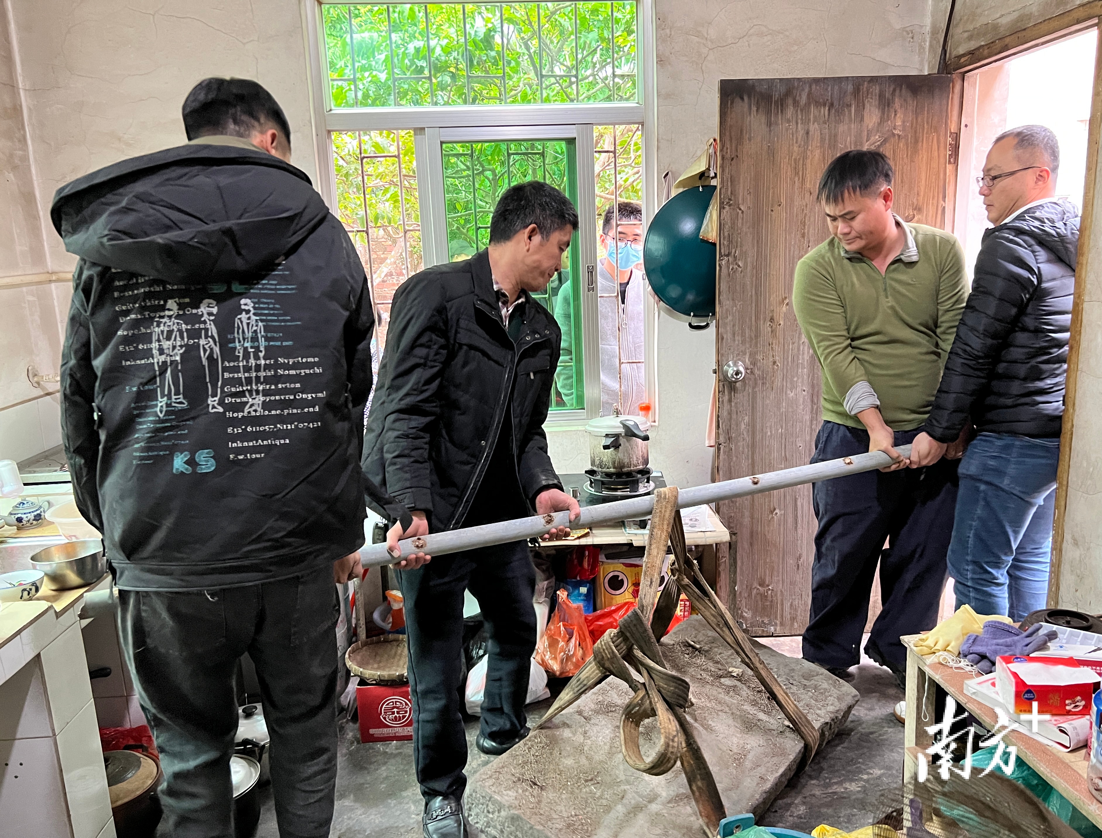 2022年1月30日,余国强和同事到村民家中,将寻获的石碑搬运出来进行保护。