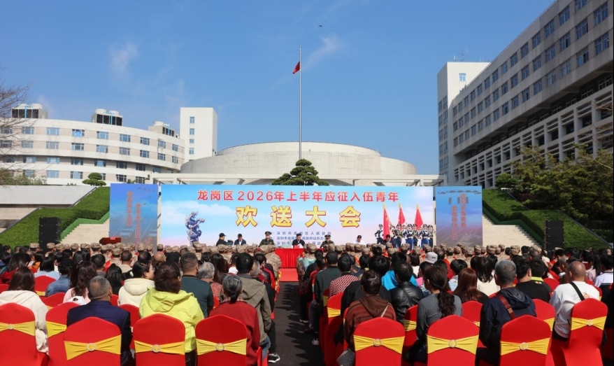 阳春三月送新兵,扬帆起航踏征程。3月13日,深圳市龙岗区举行2026年上半年应征入伍青年欢送大会,为即将奔赴军营、献身国防的优秀青年壮行助威。龙岗区区长、区征兵工作领导小组组长王策飞,区人武部主要领导朱洪亮、尹克相等领导,应征入伍青年及家长们参加大会,共同见证这一光荣时刻。