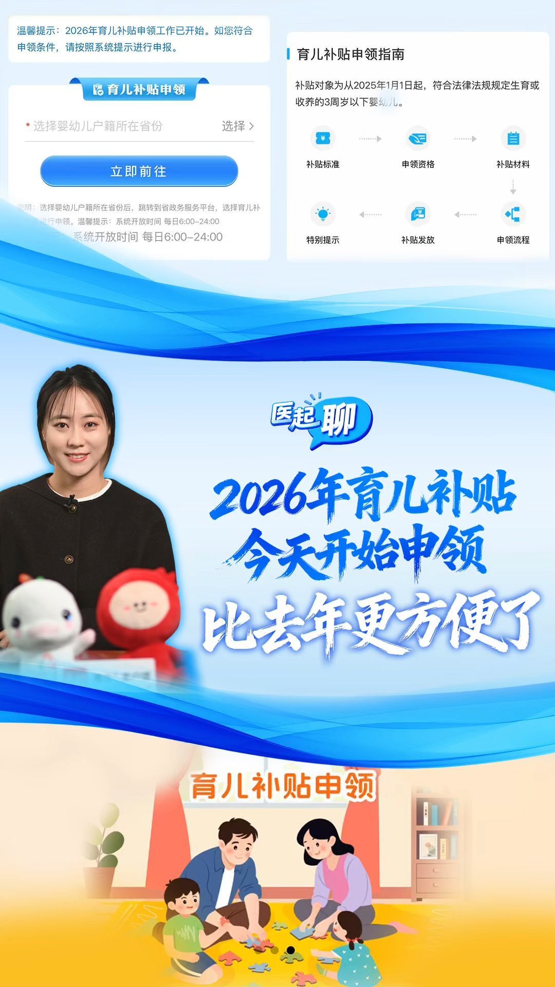 1月5日,2026年育儿补贴正式开始申领。本期《医起聊》一起关注怎么领、有哪些变化?