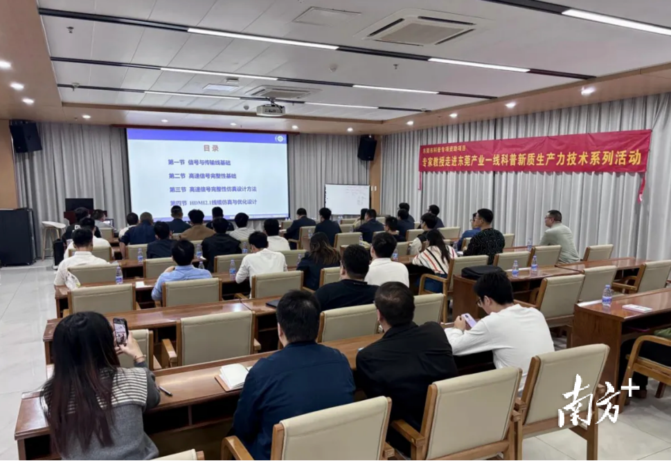 12月19日至20日,由电子科技大学广东电子信息工程研究院(下称“电研院”)组织的“专家教授走进东莞产业一线科普新质生产力技术系列活动”启动。首场活动在东莞市海能电子有限公司成功举办,电子科技大学的专家学者走进生产一线,围绕行业核心技术难点,为百余名企业技术人员带来了两场深入浅出的专题科普,助力企业破解研发难题、提升创新效能。