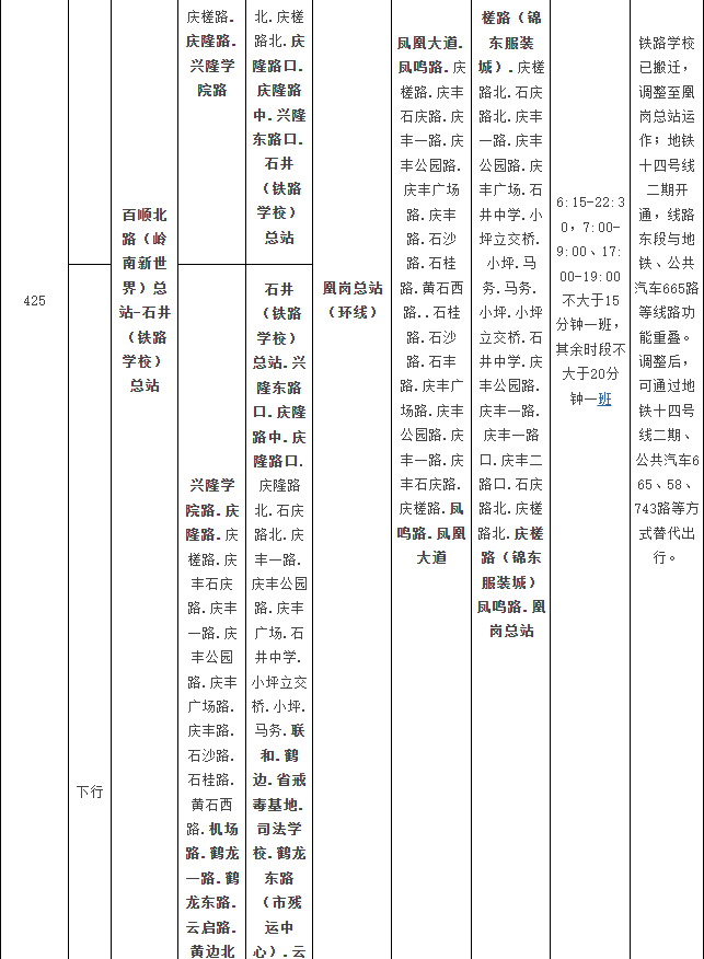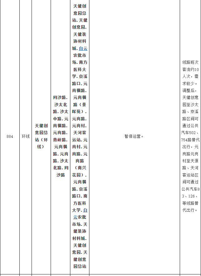 12月19日,广州市交通运输局发布《关于调整公共汽车425路等线路的公示》。为优化公交线网布局,公共汽车425、444路计划调整行经路段及站点,公共汽车高峰快线72、884、201、803、327A路计划暂停运营。