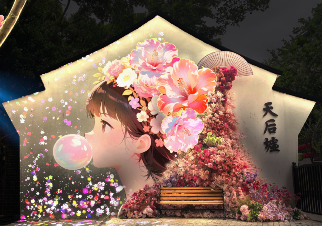 看,上古神兽“鳌鱼”正在出海!还有会眨眼的“花神”、灵动的仙鹿……这些传说中的神奇生物,都被灯光“复活”了,传统美学变得又酷又梦幻。