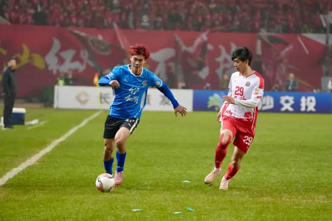 比赛刚开场就进入白热化节奏。第4分钟,长沙队59号球员马子宜抓住机会冷静推射破门,为球队先拔头筹。