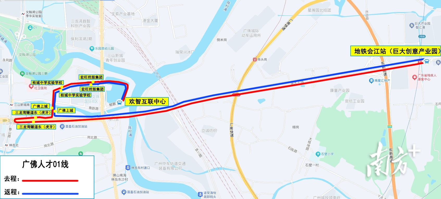 广佛人才公交专线01路线图。资料图片