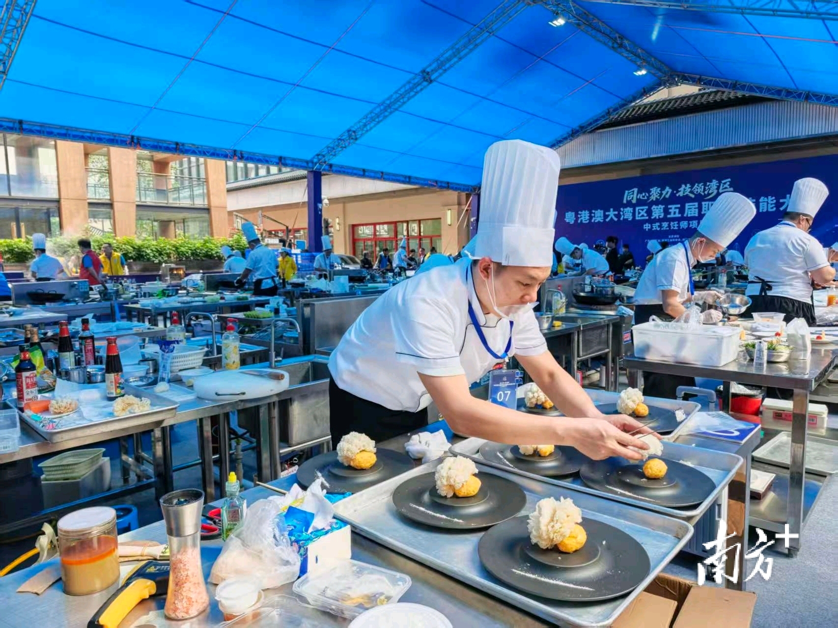 10月28日,以“同心聚力·技领湾区”为主题的粤港澳大湾区第五届职业技能大赛中式烹饪师竞赛在中山市古镇镇举行,来自广州、深圳、中山等珠三角城市及香港、澳门等地的11支队伍参赛。