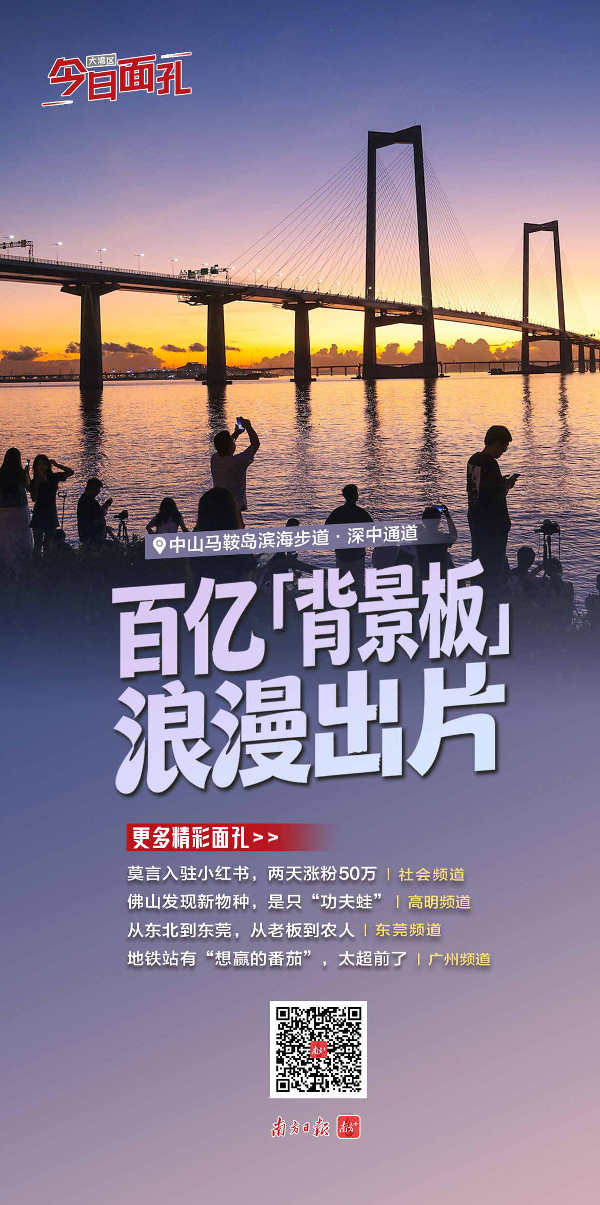 十五运会期间,这座“超级工程”成了无数游客通行的桥,也成了被反复凝望和记录的“风景”。为什么,它能“硬控”大湾区的年轻人?最美背景板>>