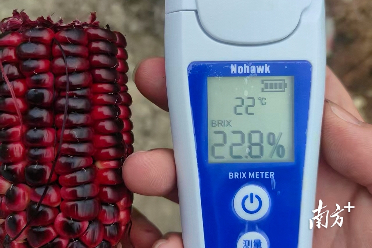“‘广科紫田玉米733’富含花青素,按照标准种植,每亩地播种1.2斤,产量可达1500斤。”广东省科学院南繁种业研究所植保博士易杰群介绍,花青素对延缓衰老、改善视力、预防心脑血管疾病均有积极作用,精准契合了当前消费者对营养健康饮食的需求,市场潜力大,这种鲜食型高端超甜玉米从出苗到采收仅需66至74天,生长周期短,甜度佳,营养价值高,其市场定位及经济效益高于普通玉米品种,能为种植户带来较好的增收前景。