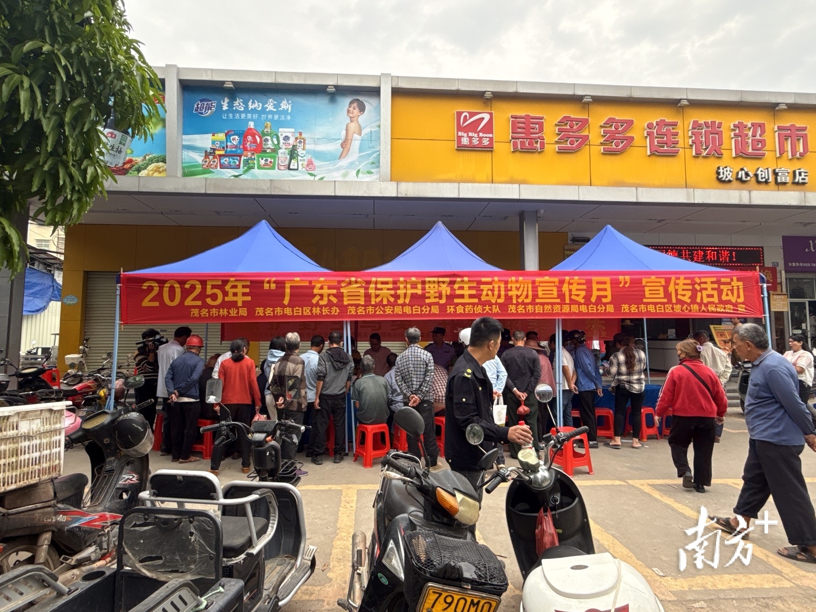 “这豹猫外形与猫有点像,穿山甲标本很逼真哦”“这些都是受法律保护的野生动物,不能随意触碰伤害”……11月18日上午,茂名市电白区坡心镇圩中心人头攒动,一场以“绿美广东、万众护飞”为主题的野生动物保护宣传活动在此开展。活动通过直观的标本展示、互动讲解等形式,吸引群众驻足围观热议。