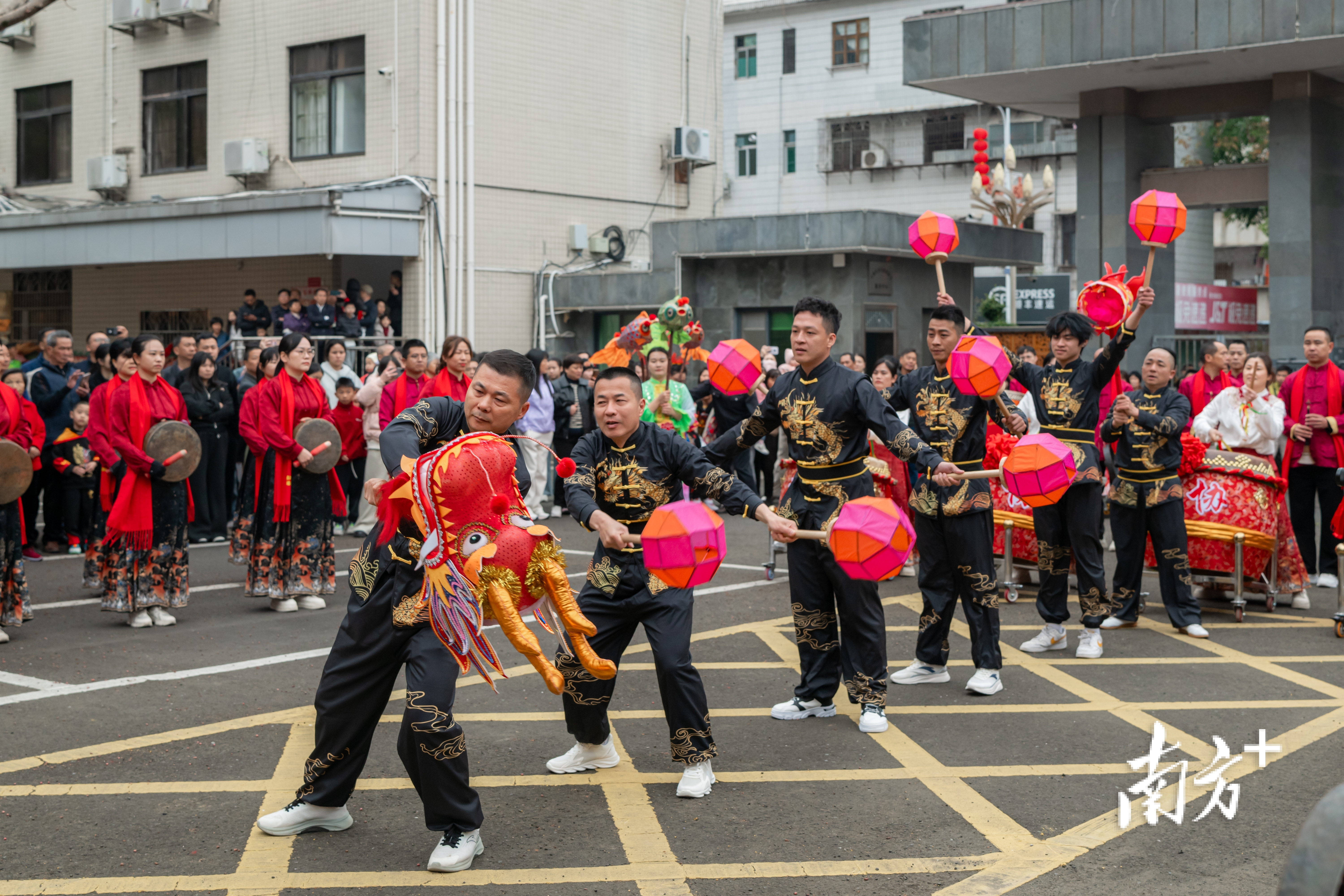 花环龙在表演者手中婉转游动,时而盘旋昂首,时而低回游走,灵动如生;醒狮奔腾跳跃,展现马年奔腾向上的蓬勃气象;锣鼓队步伐铿锵,鼓点如雷,节奏明快,气势昂扬。今年新增的鲤鱼灯表演队手持彩灯穿梭起舞,灯光流转间如群鱼竞跃,寓意“年年有余”“鱼跃龙门”;龙珠灯表演队高举珠灯,盘旋游走,珠光闪烁,象征“龙马精神”“前程似锦”。各项非遗技艺共贺春节,让大埔的新年在浓浓的文化氛围中盛大启幕。