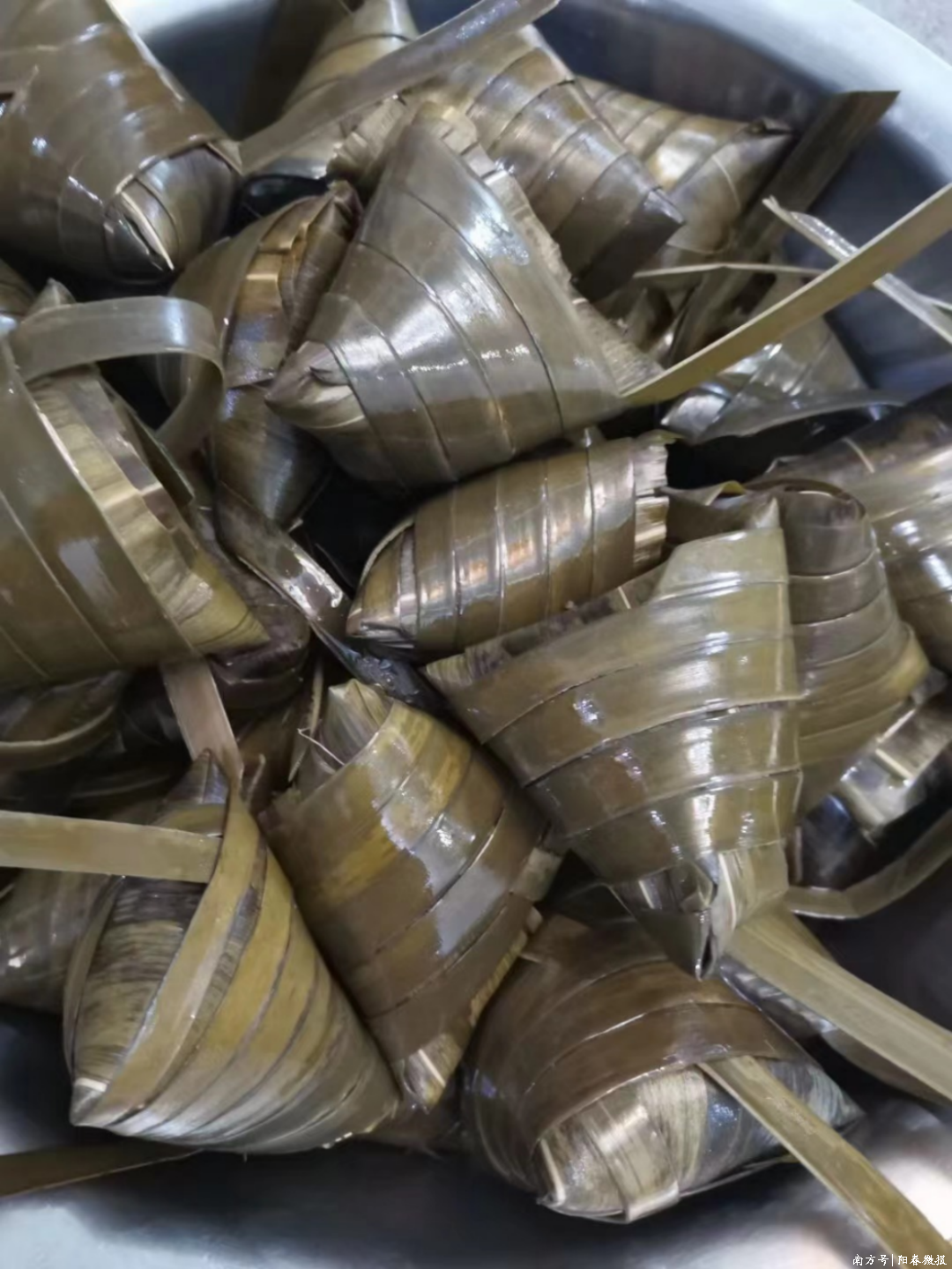 裹粽——采用糯米、绿豆、猪肉、盐、花生油等材料,由橹罟叶包裹而成。橹罟叶有独特清香,并可祛除糯米湿热。阳春人做喜事时经常用到裹粽。