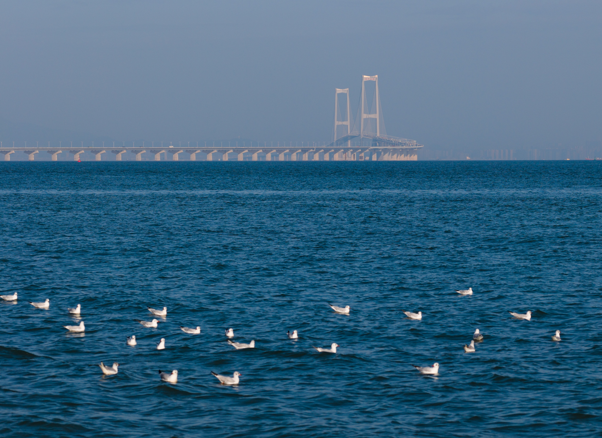 1月25日,珠三角大部天气晴好,吸引了成群结队的红嘴鸥前来深中通道“晒太阳”。南方+ 钟志辉 摄