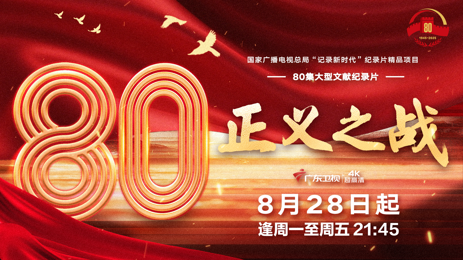 为纪念中国人民抗日战争暨世界反法西斯战争胜利80周年,国家广播电视总局“记录新时代”精品纪录片项目《正义之战》将于8月28日在广东卫视全国首播。
