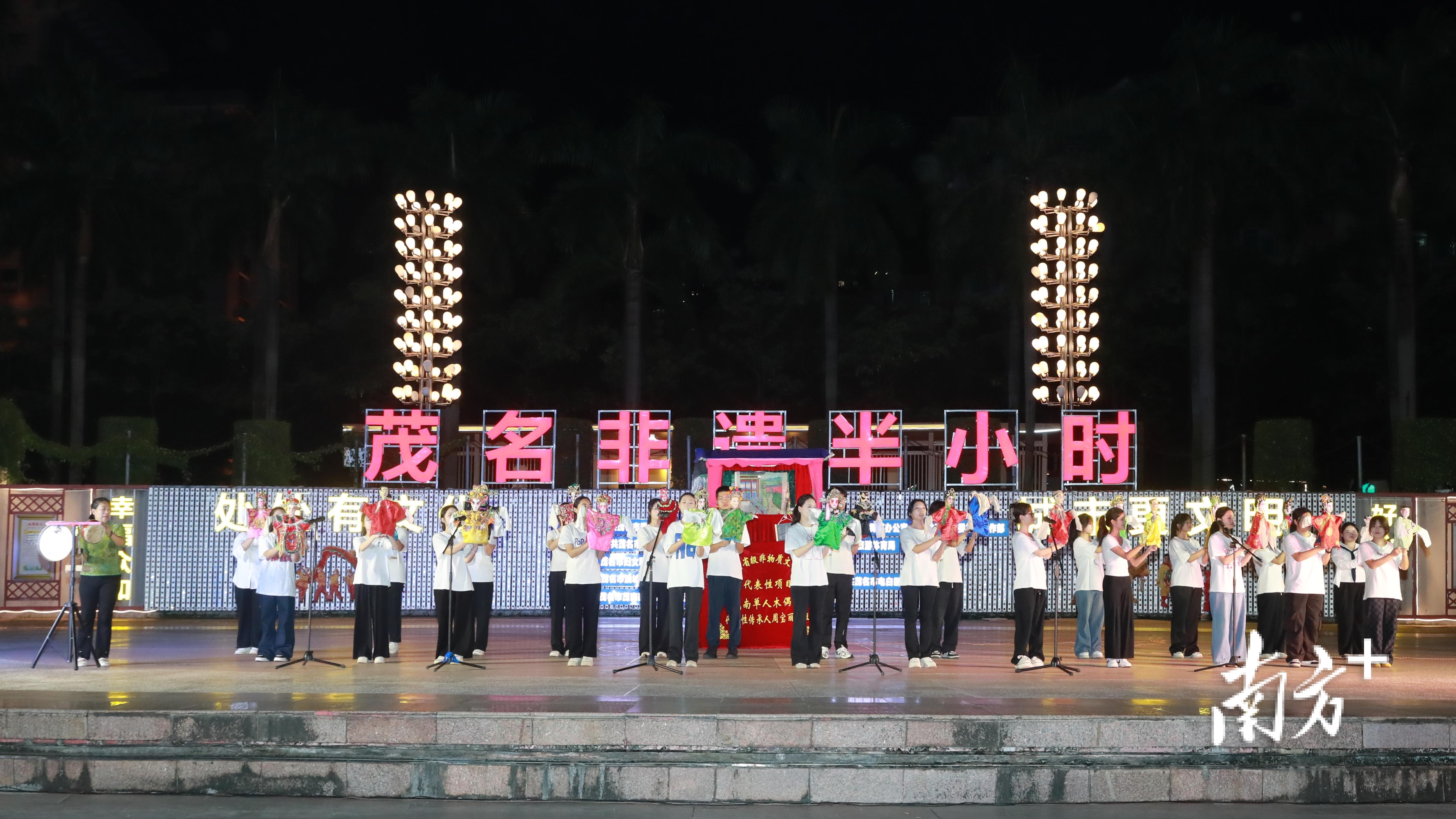 据悉,每周六晚8:00至8:30,“茂名非遗半小时”活动进行常态化演出。活动进行非遗展演、文化互动等,助力城市文明建设与文化惠民工程。自今年3月中旬该活动启动以来,茂南洪拳、灯笼舞、飞马年例、阿朱家籺制作技艺等多个非遗项目亮相,让市民们近距离感受茂南非遗的魅力。