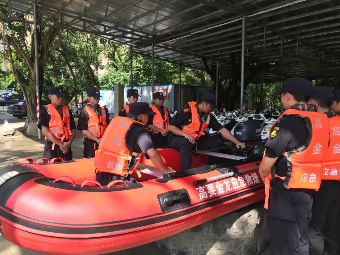 高要区金龙应急综合救援大队也进行了台风暴雨洪水防御应急演练,高效完成冲锋舟快速拆装、冲锋舟发动机安装、油锯操作、物资转移等紧急救援内容。同时,提前准备了充足的抢险救援装备,包括救生衣、救生圈、橡皮艇、水上救援绳索等物资一批,确保在险情发生时能够快速投入使用。
