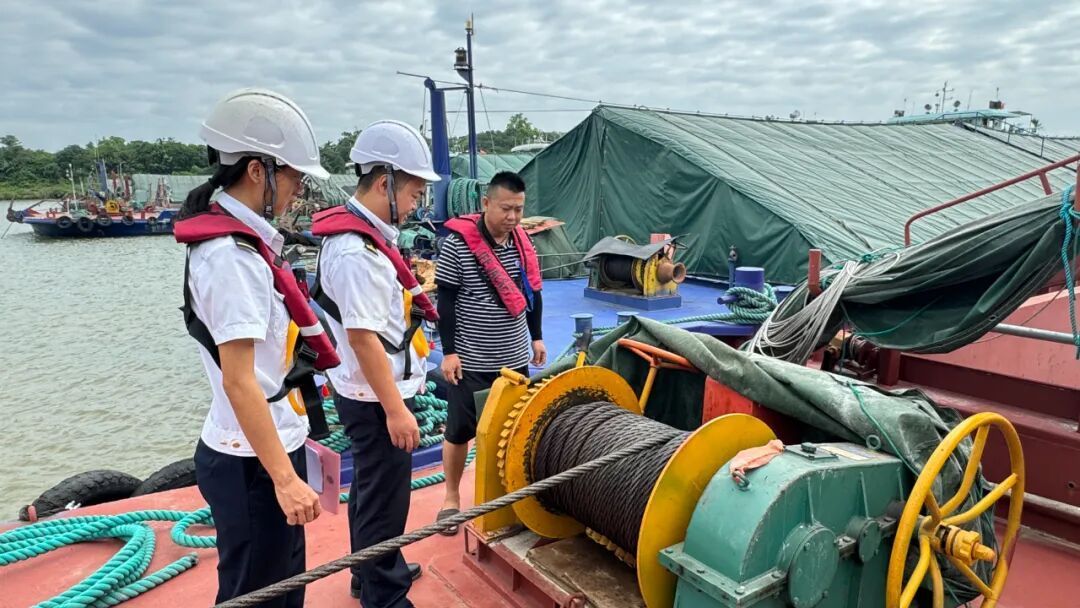 在登船走访中,高要海事处执法人员对船舶安全设备进行全面细致检查,包括物资储备是否齐全、通讯设备是否畅通、动力和锚泊系统是否正常等关键环节。同时,提醒船员在舱面活动时必须规范穿着救生衣,加强值班值守,密切关注气象水文预警的实时变化。针对台风可能带来的强风大浪,高要海事处严格要求所有船舶从单锚改抛双锚以增强锚泊稳定性,严防船舶走锚等险情的发生。