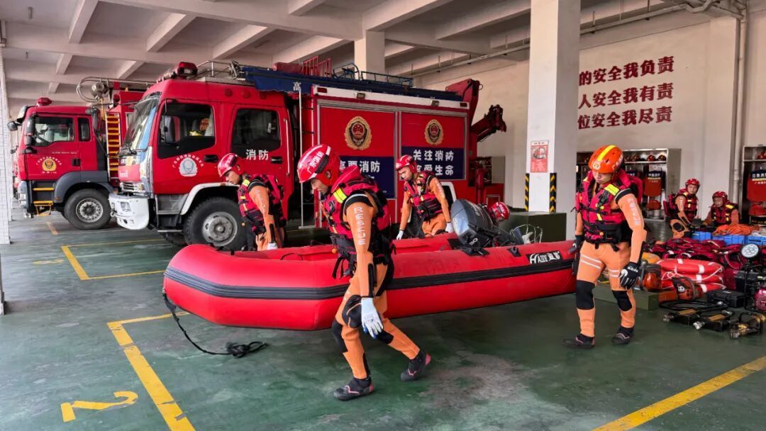 高要区消防救援大队紧锣密鼓加强防汛应急训练,打好应急救援“准备战”;同时,细致排查各类防汛、救援设备,确保设备完好无损,有效应对台风可能带来的各种紧急情况。