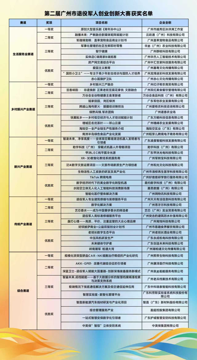 近年来,广州市以政策创新为引擎、平台搭建为纽带、金融赋能为突破,组织开展“广州军创”高质量发展政策宣讲、资源对接、走进广交会、乡村振兴行、以赛促创、故事挖掘、品牌推广、典型宣传系列活动,全面激发退役军人创业创新活力,“广州军创”2个项目分获全国退役军人创业创新大赛一等奖和三等奖,15个项目获省退役军人创业创新大赛一、二、三等奖,推出“戎归南粤谱新篇”退役军人创业先锋5名,目前全市退役军人创办企业75790余家,“广州军创”成为推动广州市“12218”现代化产业体系建设的重要力量。