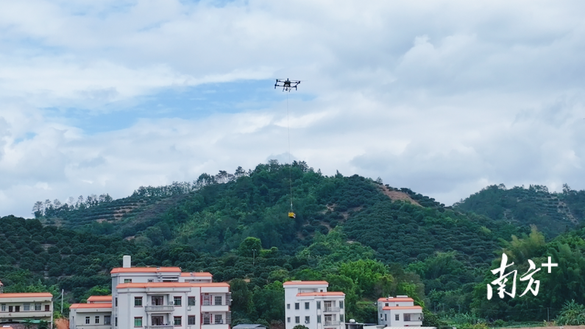 今年荔枝季,平山利用无人机运输荔枝。