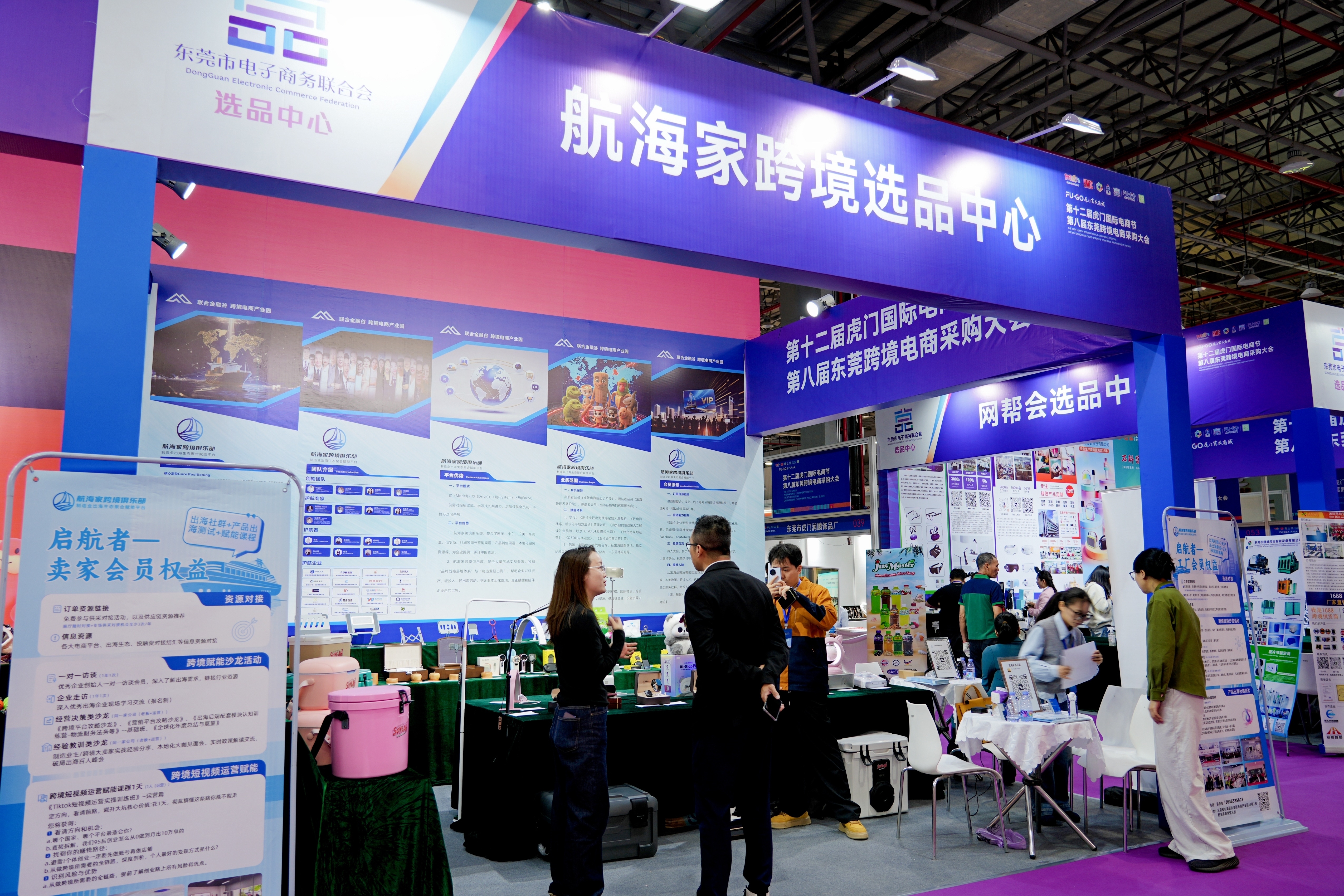 现场还设立了“1688东莞选品中心”“航海家跨境俱乐部”“网帮会(WBH)”“石排潮玩选品中心”“莞品莞货选品中心”“遥望科技选品中心”等六大精选选品中心,连接优质厂家与广大采购商,为传统企业打通电商转型全链路——从选品匹配、平台运营到资源对接,从模式梳理到实操赋能,全方位助力从业者在电商赛道高效破局。