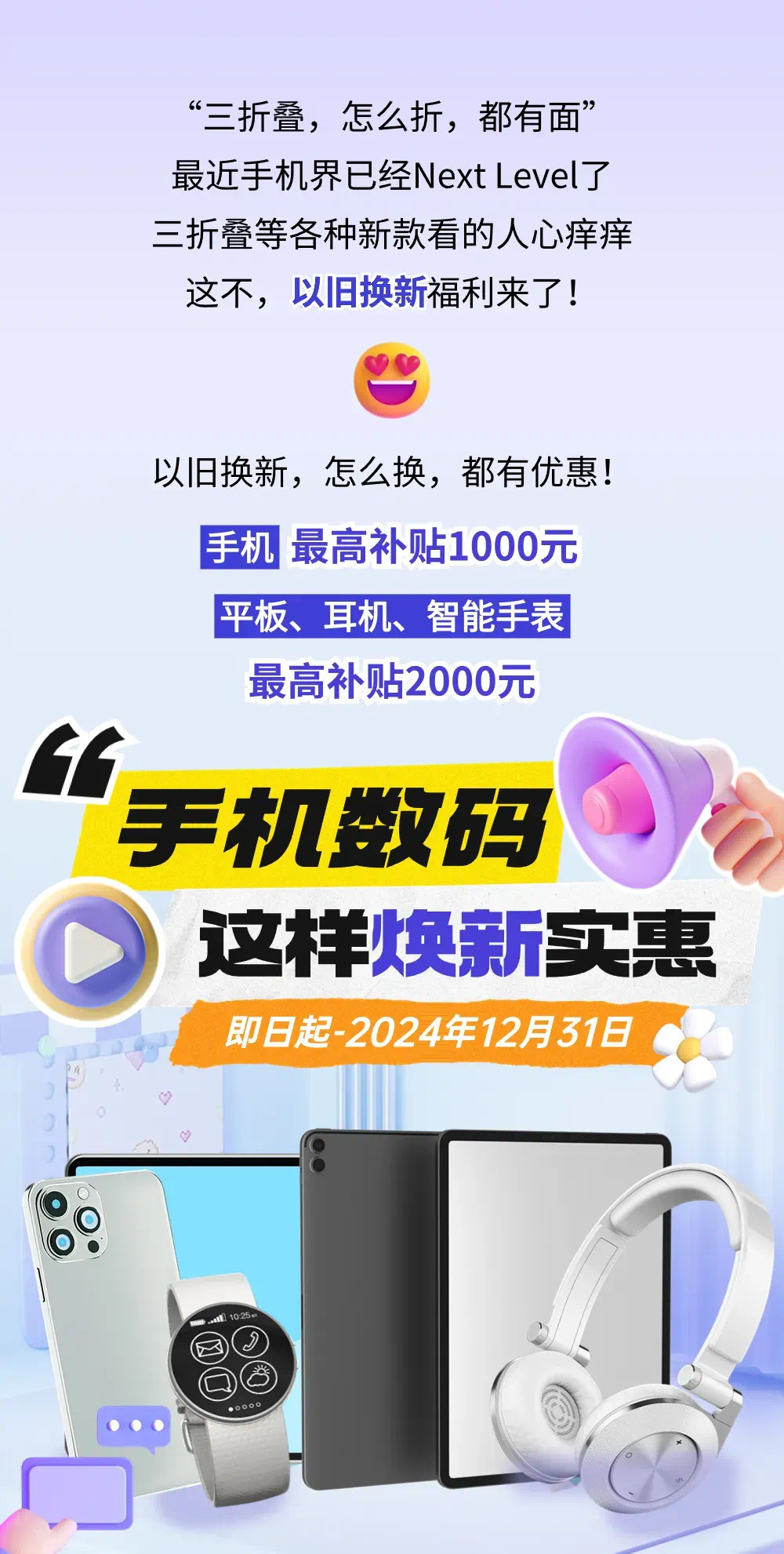 换手机再也不用心疼钱包啦!9月28日,广州官宣手机、平板电脑、智能穿戴设备加入“以旧换新”活动,能省多少、怎么操作?一文读懂!温馨提示:目前,想参加3C类产品以旧换新活动的消费者,需前往参与本次活动的线下商户购置新机,线上家电以旧换新暂不包含3C产品。活动上线时间为2024年9月28日15:00,优惠券领取后有效期8天。南方+记者 洪钰敏通讯员 穗商务宣 南方日报、南方+客户端原创,未经授权不得转载 编辑 钟冠婷校对 胡柔群 订阅后可查看全文(剩余80%)