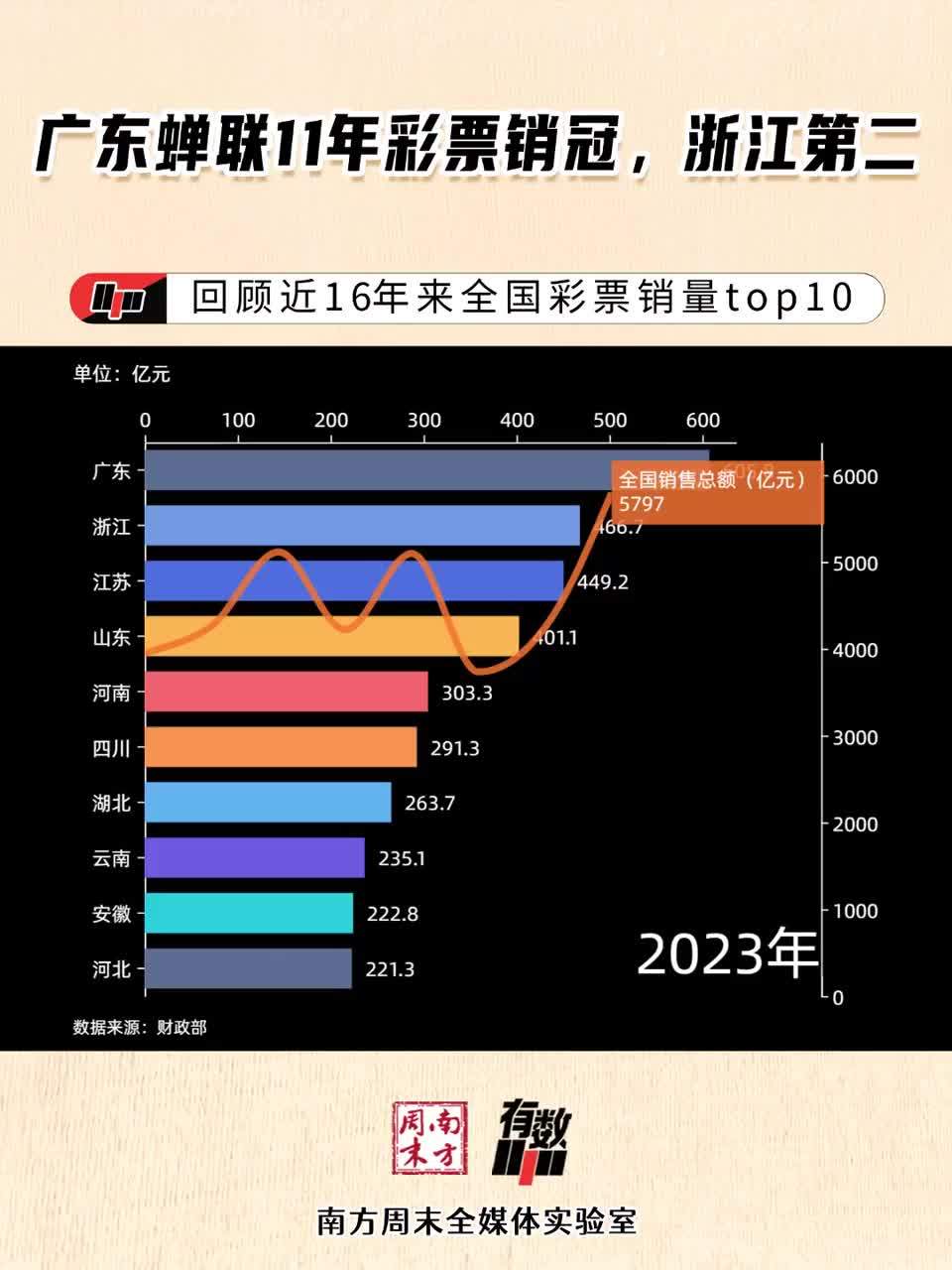广东蝉联11年彩票销冠,浙江第二丨有数