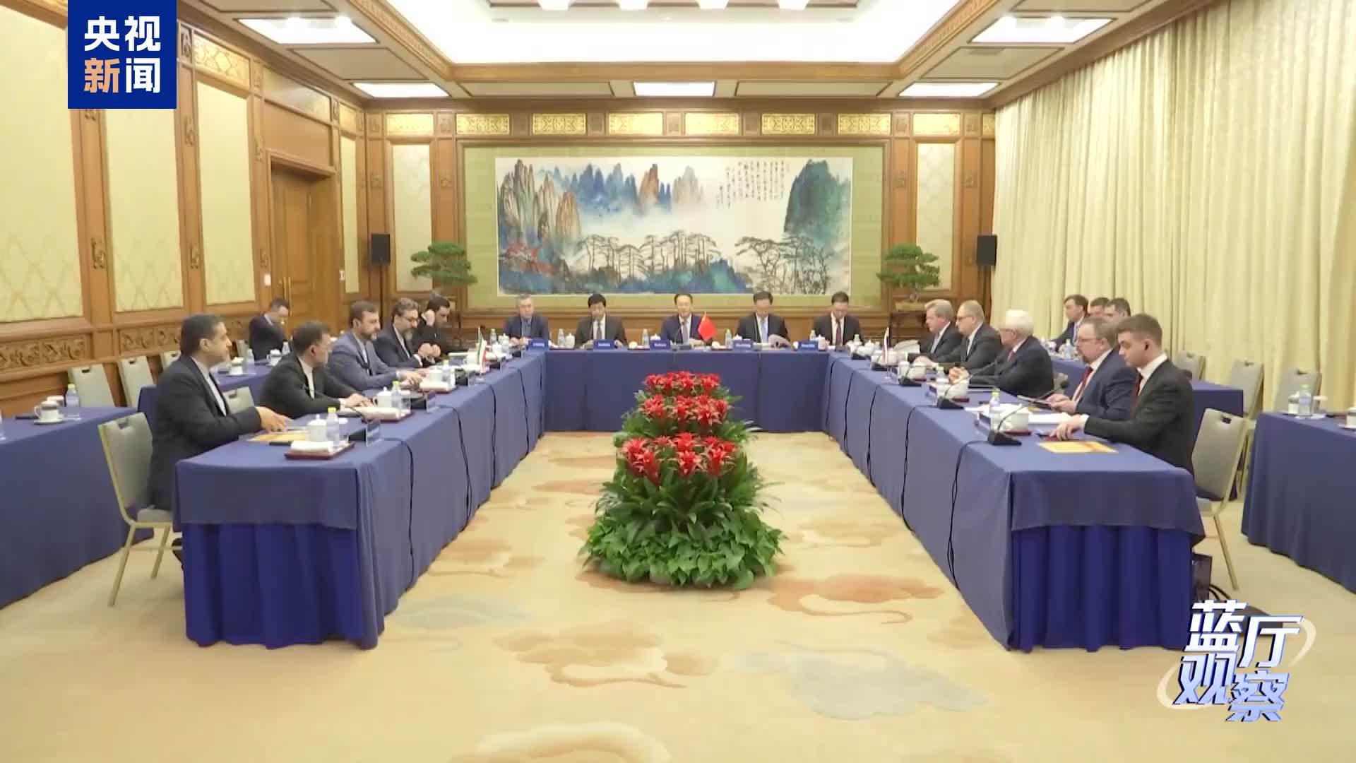 今天(14日)上午,中方举行伊朗核问题中俄伊北京会晤。