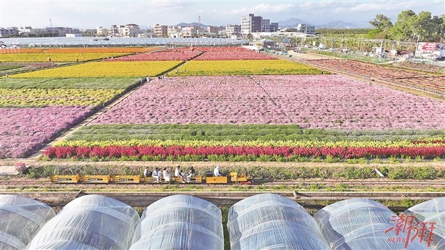 漫步在潮安区溪东种养专业合作社广阔的花田里,大自然仿佛在这里打翻了调色盘。