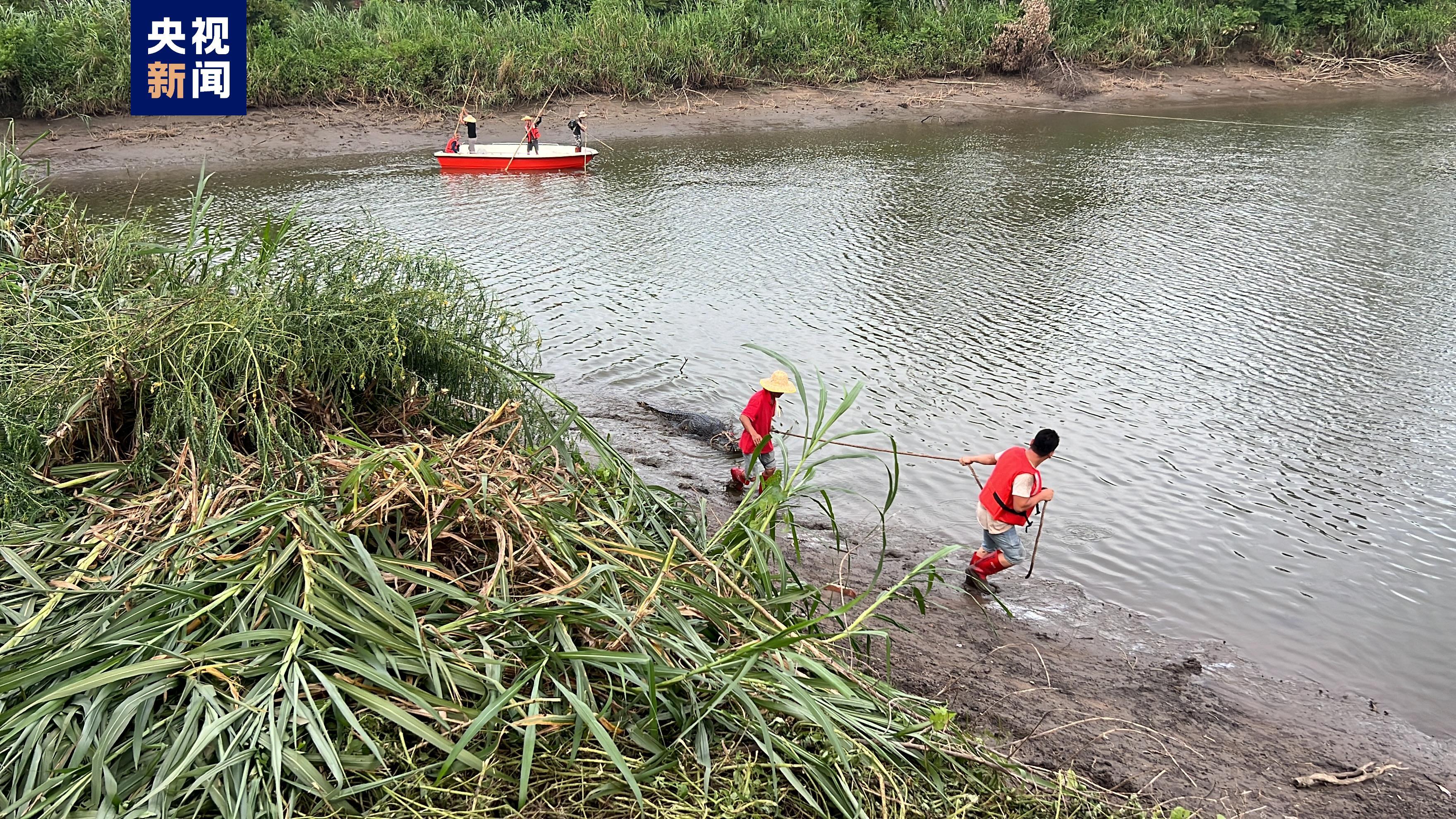 工作人员在现场搜捕鳄鱼(央广网发 黄东旭 摄)