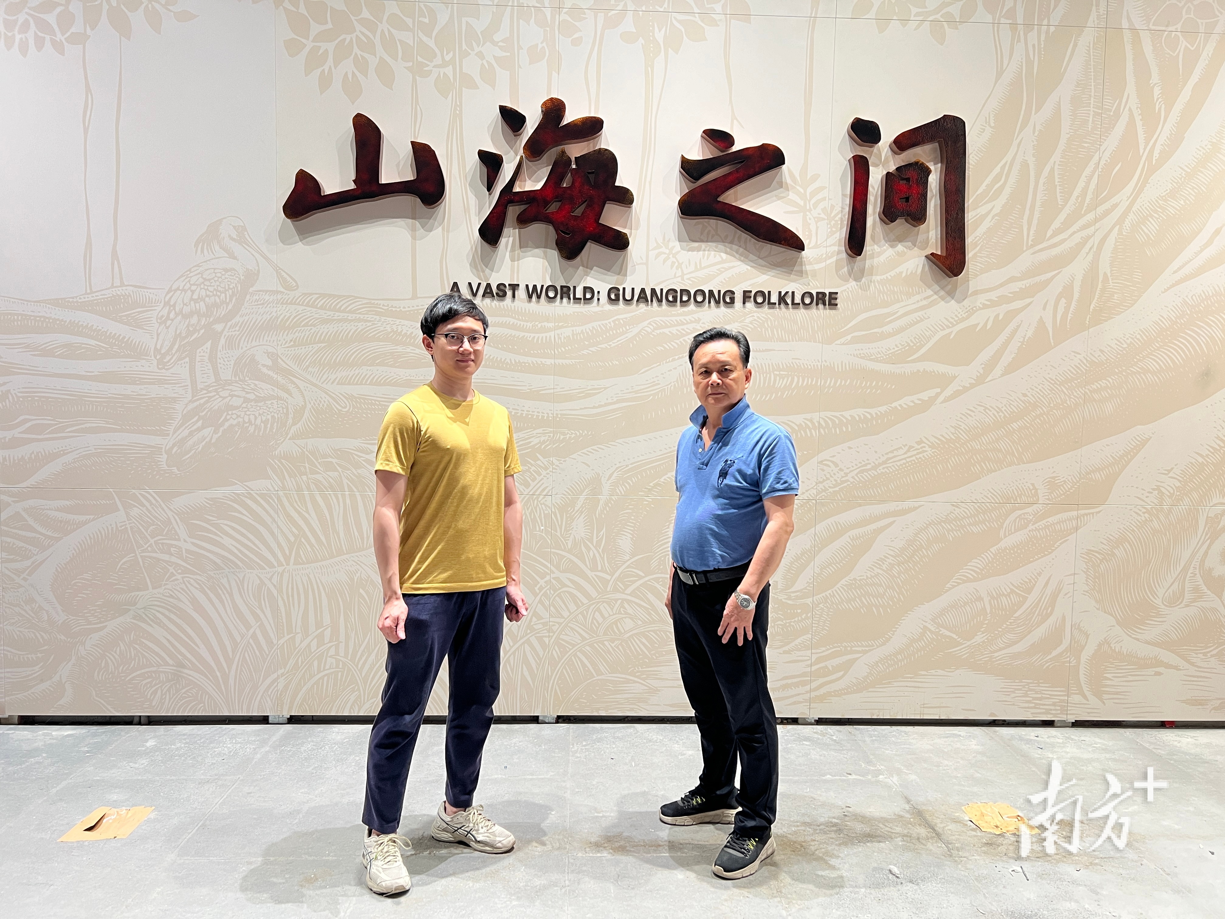 每层展厅的标语设计也有门道。上阵不离父子兵,广州珐琅制作技艺传承人杨志峰、杨承燊父子,共同为“山海之间”展厅标语设计珐琅字。