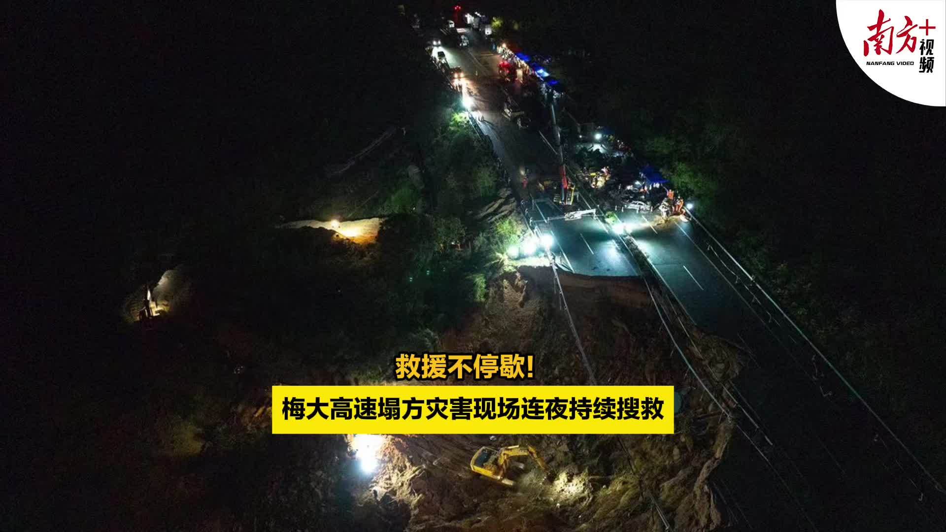 救援不停歇!梅大高速塌方灾害现场搜救连夜持续