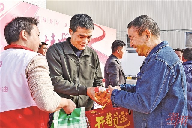 春运首日,“情暖驿站”春节公益活动启动仪式在中国石化潮州饶平闽粤加油站举行。活动方为40余名春运返乡出行人员以及卡车司机、环卫工人、外卖员等群体送上大米、食用油等礼品,并开展“满爱迎新岁 暖心团圆饭”活动。