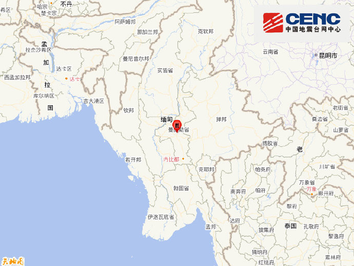 中国地震台网正式测定:4月13日10时24分在缅甸(北纬21.00度,东经95.95度)发生5.4级地震,震源深度20千米。