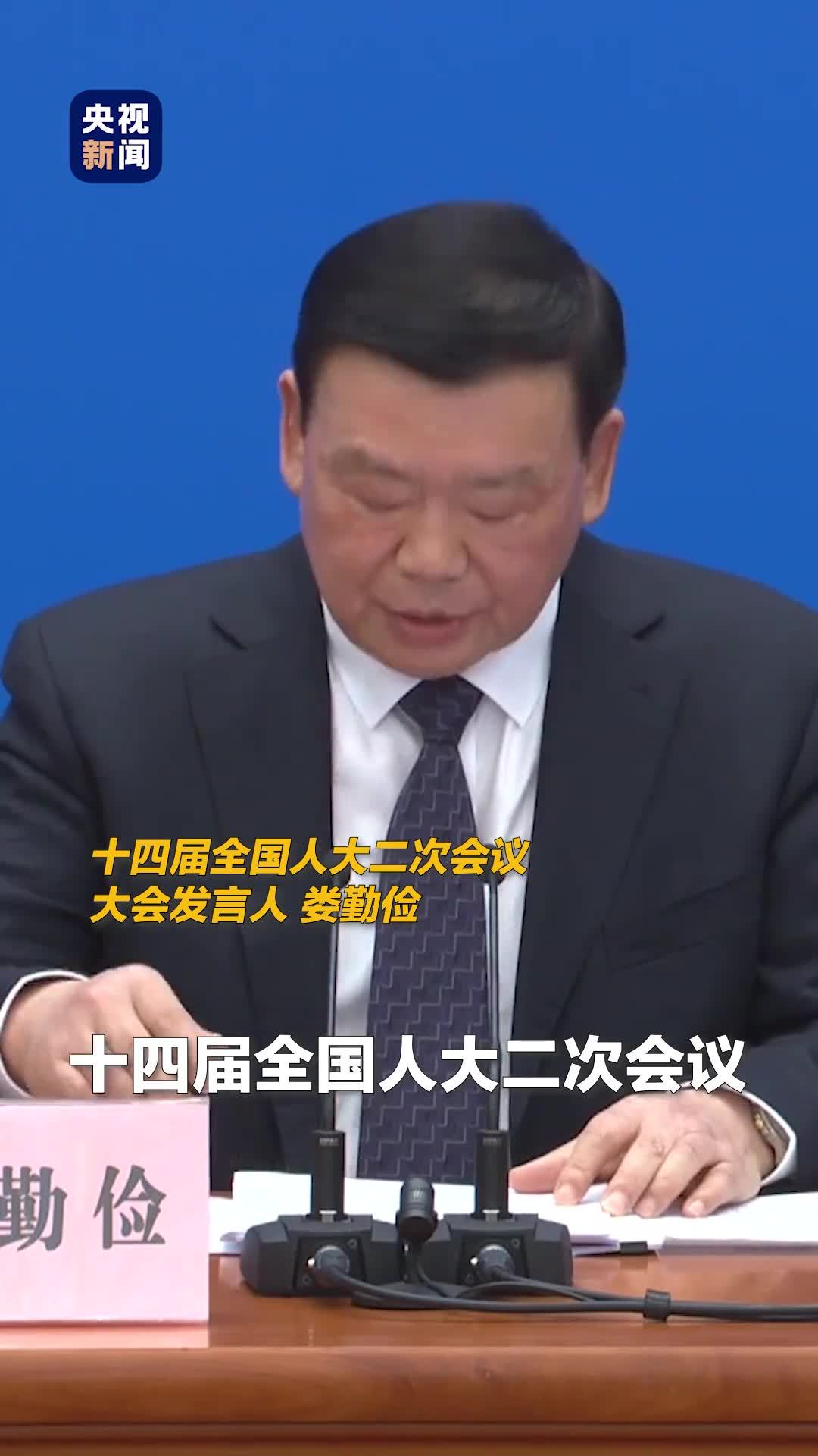 十四届全国人大二次会议今天(3月4日)在人民大会堂举行新闻发布会,大会发言人娄勤俭就大会议程和人大工作相关问题回答中外记者提问。