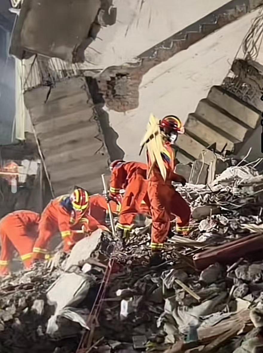 救援现场。据该家属讲述,事发地是表姐一家所住的,“那个房子也不知道是租的还是买的,小孩念书,表姐陪读”。在此次事故中,表姐表姐夫已遇难,目前外甥女小腿已坏死,正在接受截肢手术。“埋太久了,省内专家会诊说保不住两个小腿”。