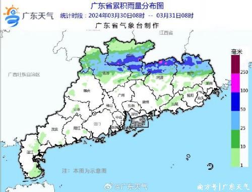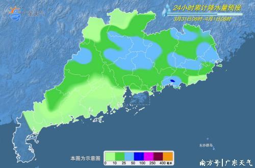 31日,受高空槽和西南暖湿气流影响,粤北市县有大雨到暴雨局部大暴雨,其余市县有分散的阵性雷雨,雷雨时伴有局地短时强降水、8级左右大风、局地小冰雹。4月1日到2日,广东大部多云为主,部分市县有雷阵雨天气,局部雨势较大。目前广东已进入强对流多发的季节,需注意防御雷电、短时强降水、雷雨大风等天气及其引发的次生灾害。
