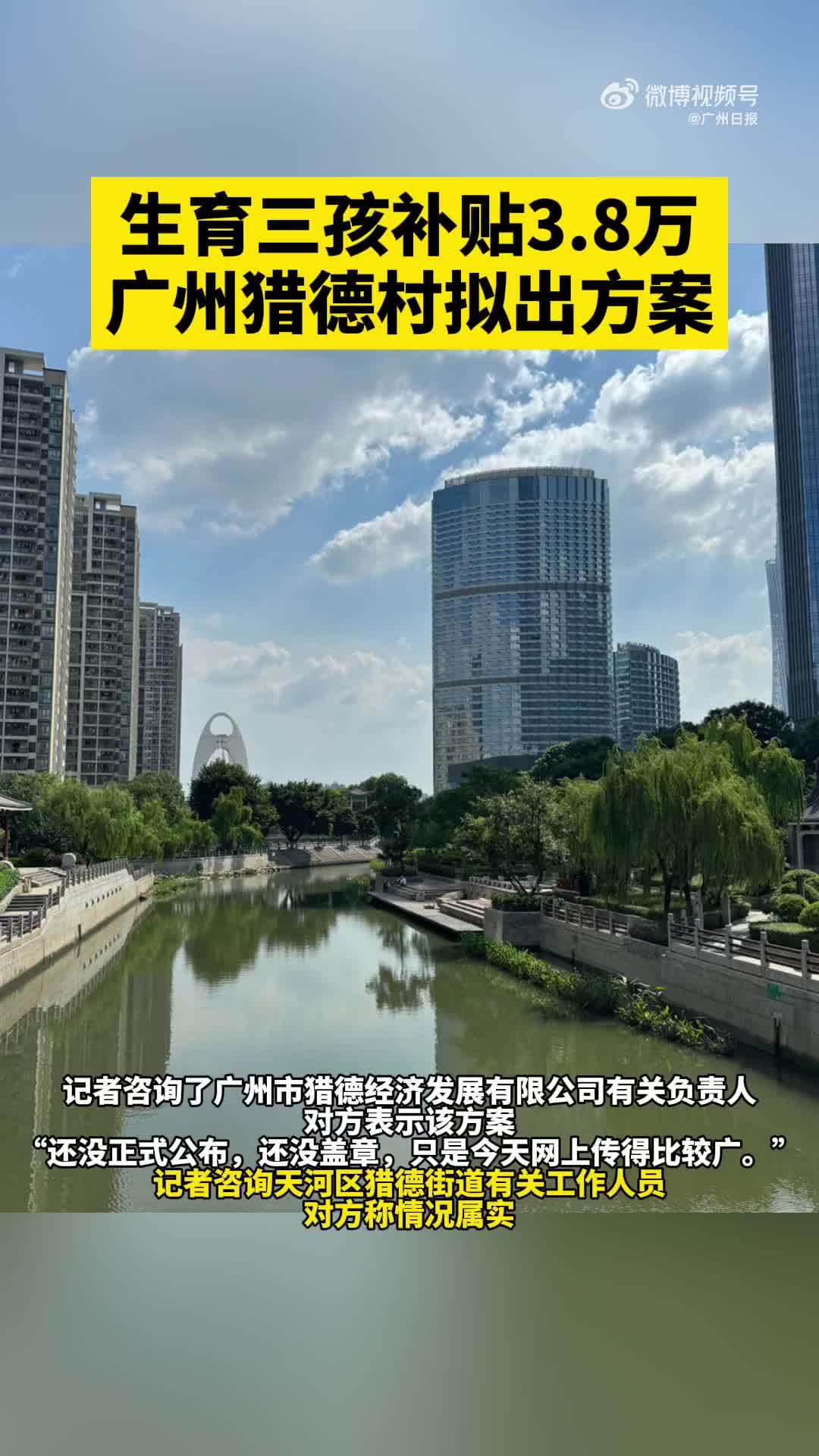 (广州猎德村回应“生三孩补贴3.8万元”)