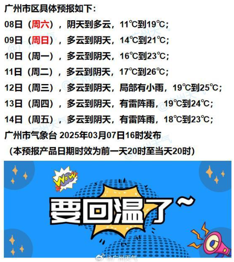 @广州天气预计,从今天开始,广州以多云天气为主,气温回升明显,部分时段可见阳光,下周中后期又有雷雨到访。气温回升是一个循序渐进的过程,大家还是及时添衣保暖。