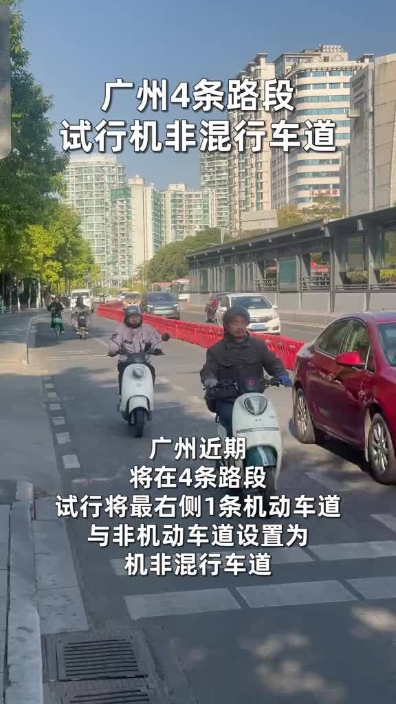 广州4条路段试行机非混行车道!降低“电鸡”对其他车道影响