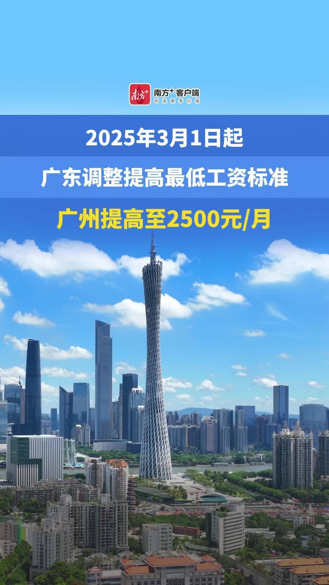 2025年3月1日起,广东调整提高最低工资标准,广州最低2500元/月