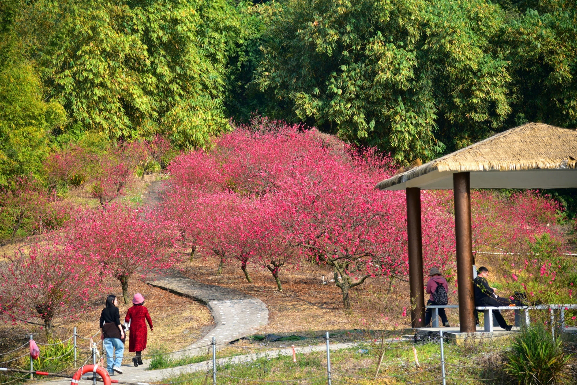 佛山市三水区南山镇的卡玛缤纷花世界内,“世外桃源”景区的万株桃花迎来最佳观赏期