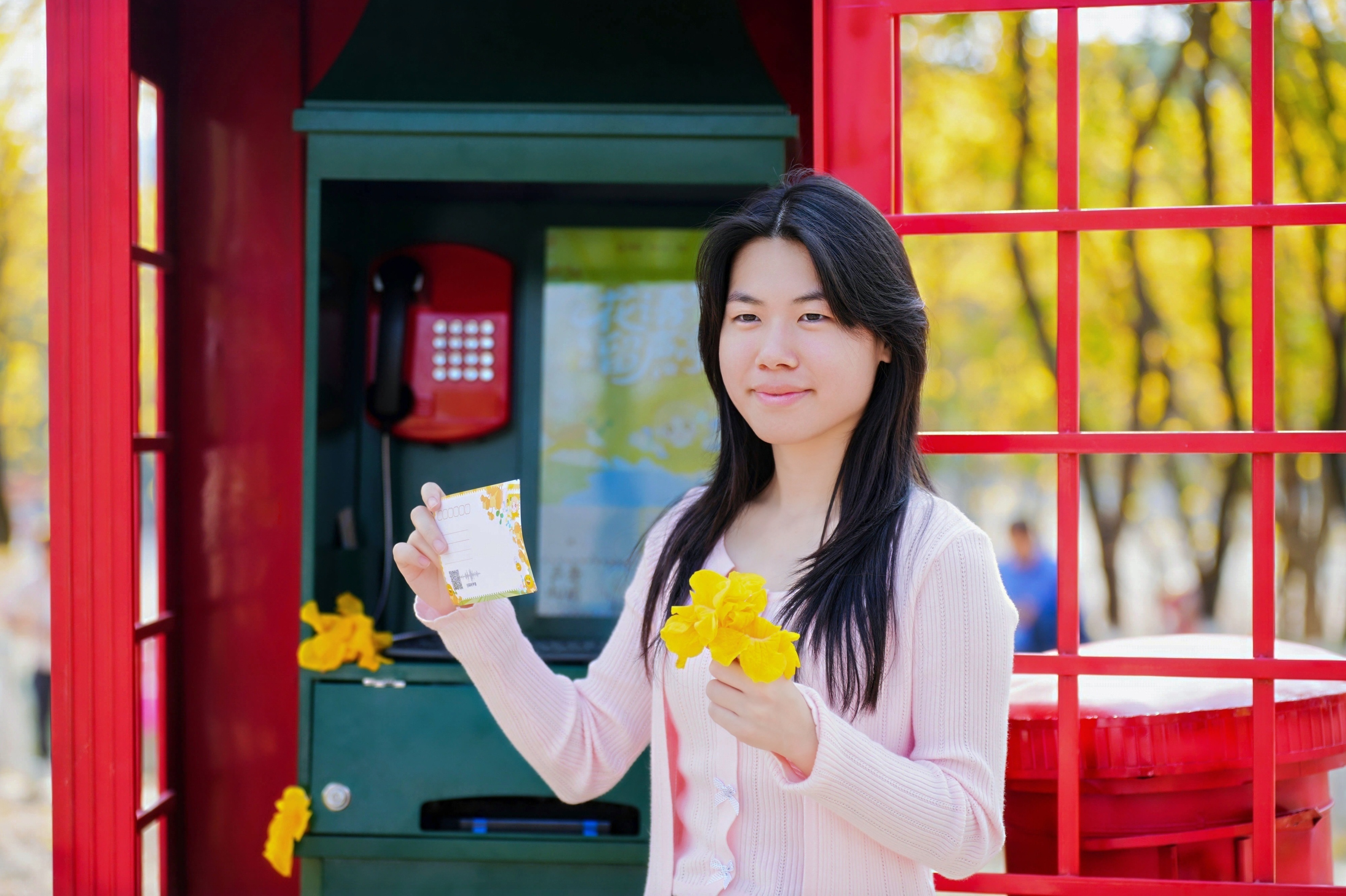 现场设置的花语留声亭,兼具寄递与互动功能,游客可将春日祝福写在“黄花明信片”上寄给远方亲友,也能扫码录制专属声音、定制声波图案,让春日美好可听可寄。