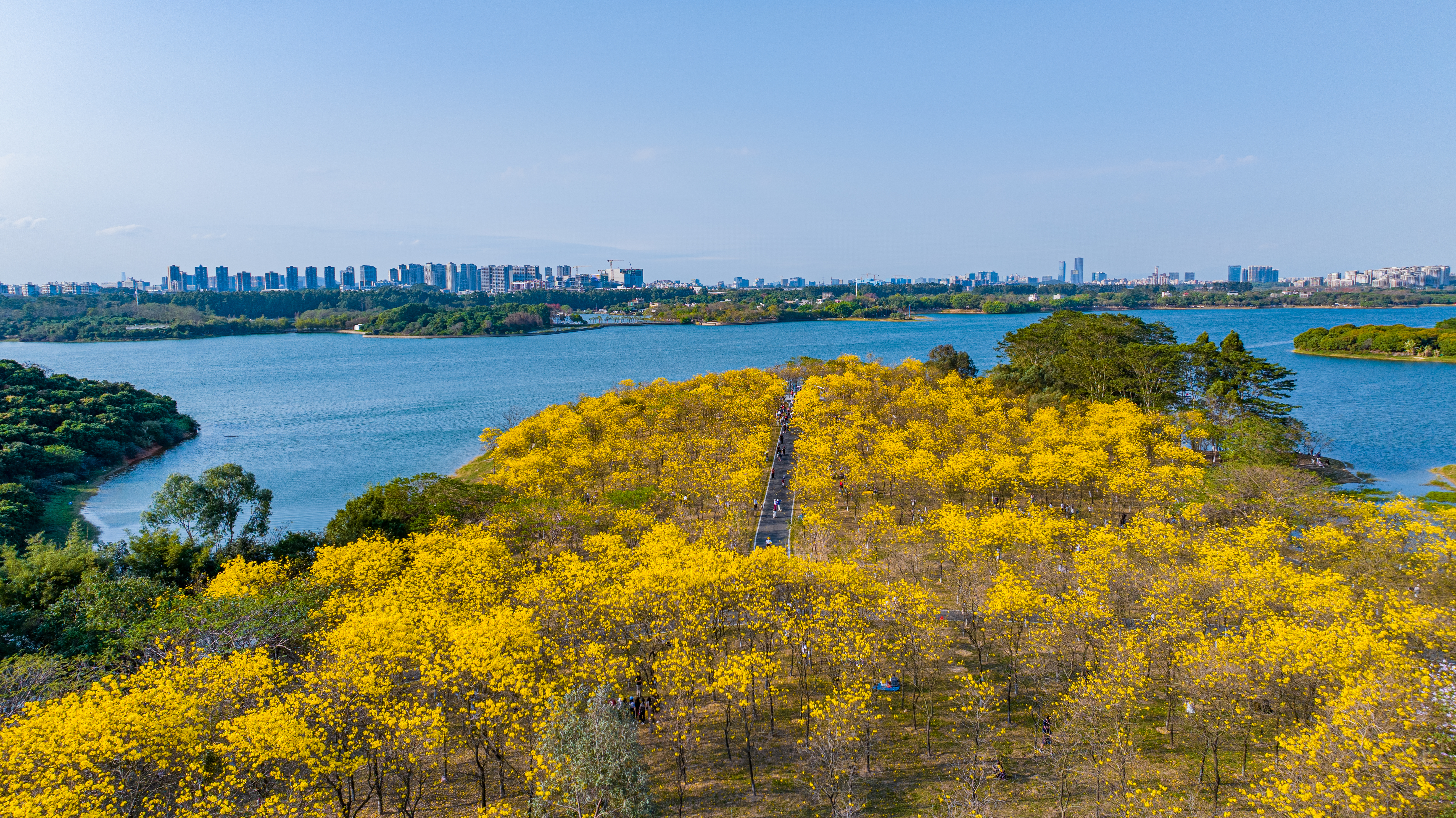 松山湖黄花风铃木林的金色花海吸引了各地游客前来打卡,现场游客们徜徉花海,纷纷为松山湖的春日盛景点赞,现场满是欢声笑语与打卡留念的身影。