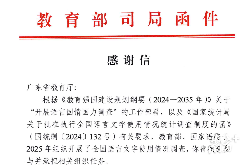 在2025年全国语言文字使用情况调查工作中,阳江市教育局周密部署,组织20名教师调查员深入阳西县600户家庭开展入户调查,建立“调查员+网格员+村干部”协同机制,调查覆盖率和数据准确率均达100%。近日,教育部、国家语委向广东省教育厅发来感谢信,对参与调查的工作人员表示诚挚感谢,阳江市陈艳蓝(阳江市教师发展中心)、林粮眺(阳西县教师发展中心)等同志名列感谢信附件调查人员名单,为全省语言文字国情调查工作作出积极贡献。