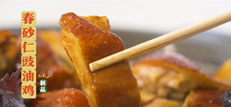 这道菜选用养了180天的清远鸡,肉质紧实,烹饪时加入有暖胃止痛功效的阳春特产春砂仁和特调酱汁,让这味豉油鸡的风味与温补效果双双在线。