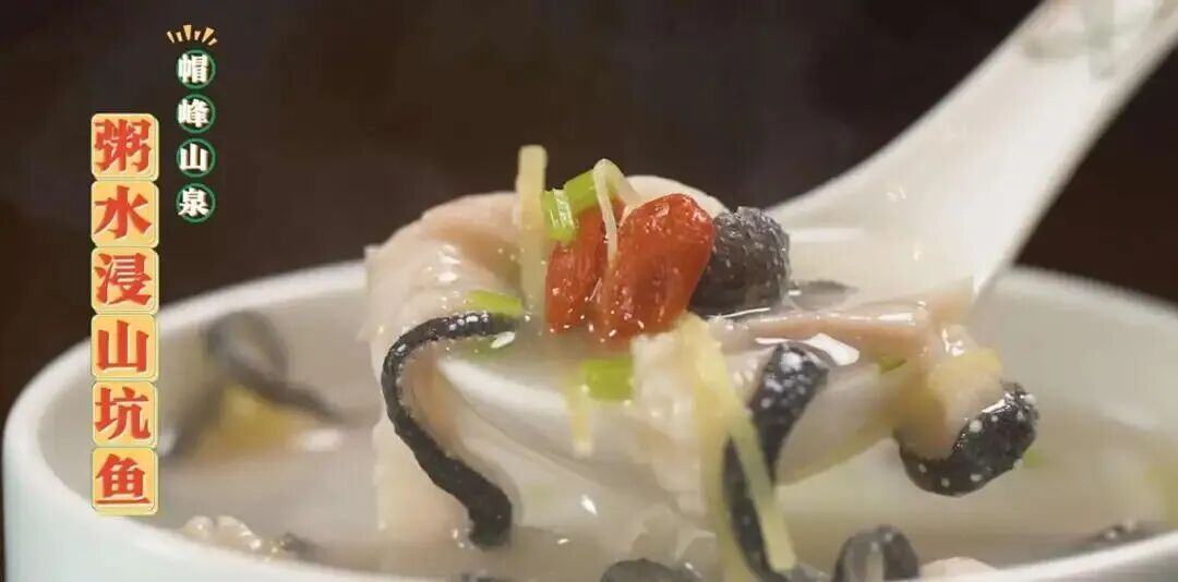 这是另外一款鲜甜的靓汤。这款不同的是,汤底是粥水,烹饪时往粥水加入切片的野生山坑鱼,滚烫10分钟后,仅加少量盐即可享用。野生山坑鱼肉质细嫩,与富有米香味的汤水结合,更为鲜甜。