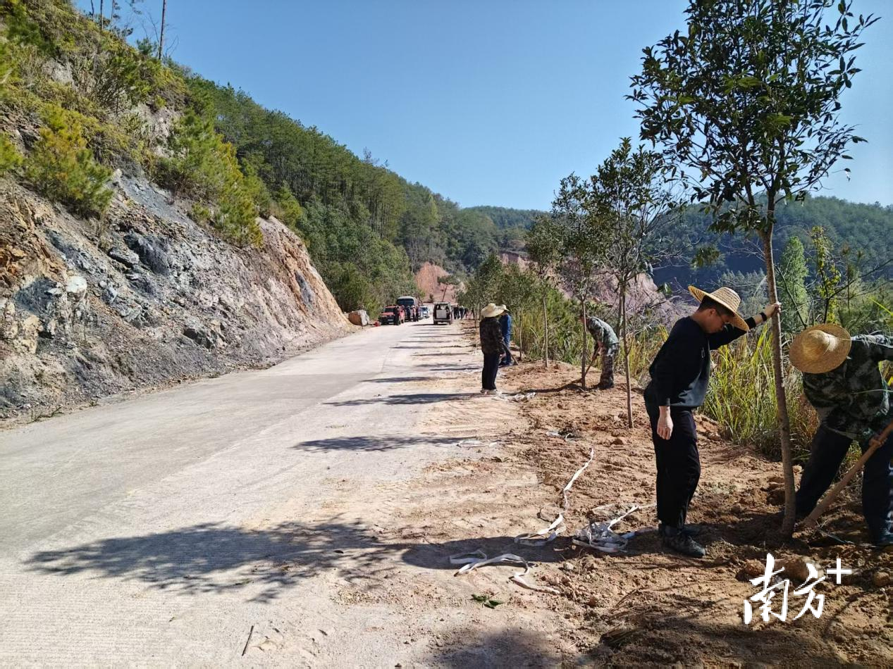 村道优化精准发力,交通沿线绿美增色。东陂村双龙公路同步推进绿化提升,集中种植桂花100株,进一步优化提升交通要道周边绿化格局,花香相伴、绿意随行,让乡村道路既保畅通更具颜值,实现 “村点出彩” 与 “路景成线” 有效衔接。