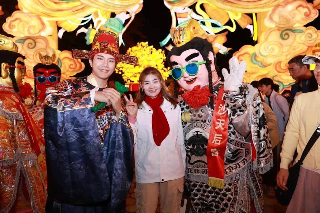 本届灯会创新打造“白+黑”全时全域游玩体系,游客白天可以体验妈祖祈福、丛林飞跃、户外营地等特色活动,夜间则可乘坐小火车沉浸式赏灯观景,实现日夜游玩体验的双向提升。