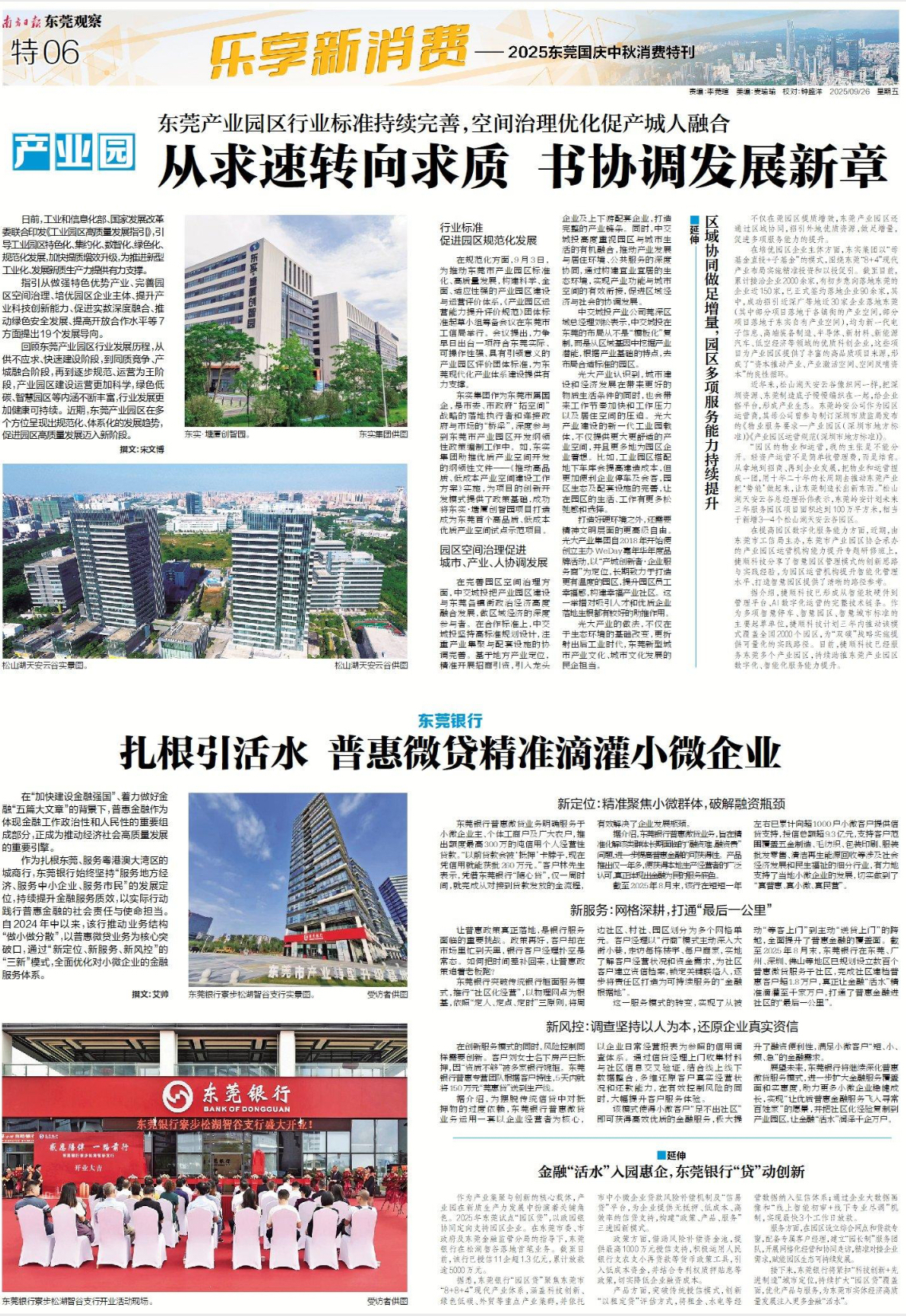 接下来,东莞银行将紧扣“科技创新+先进制造”城市定位,持续扩大“园区贷”覆盖面,优化产品与服务,为东莞市实体经济高质量发展注入更多金融“活水”。