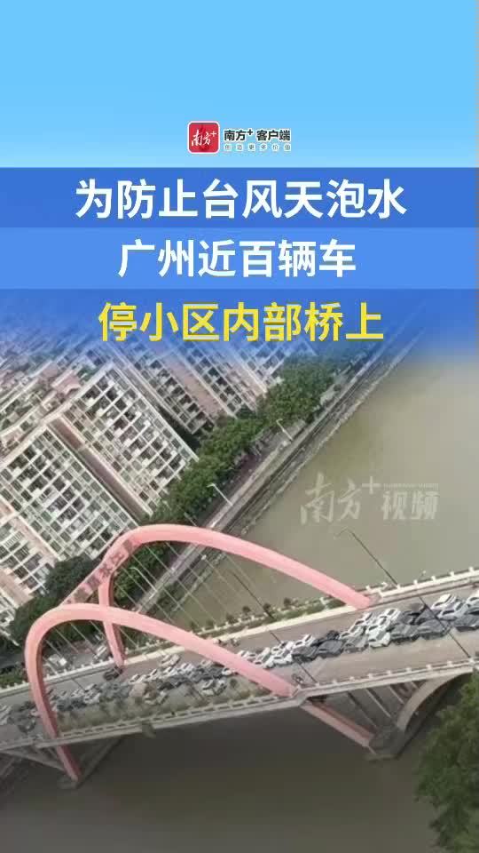为防止台风天泡水,广州近百辆车停小区内部桥上
